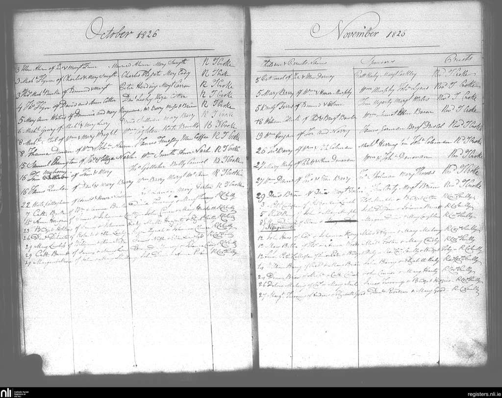 Cobh; County of Cork; Diocese of Cloyne. Baptisms, Oct. 1826 to Nov. 1826