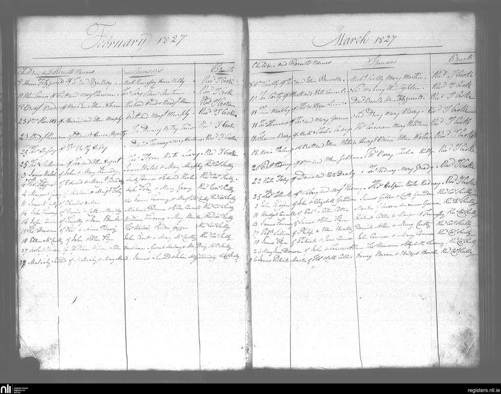 Cobh; County of Cork; Diocese of Cloyne. Baptisms, Feb. 1827 to Mar. 1827