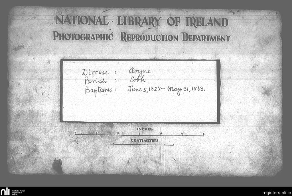 Cobh; County of Cork; Diocese of Cloyne. Baptisms