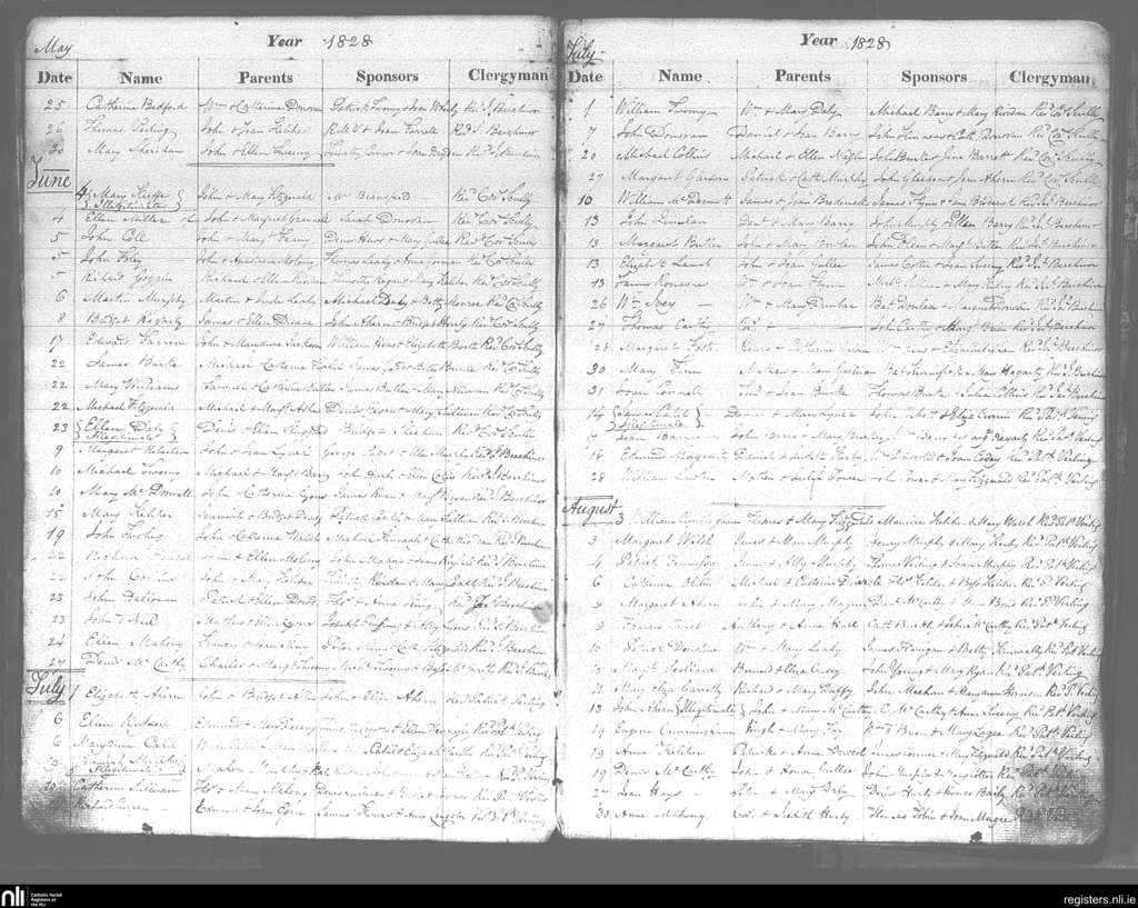 Cobh; County of Cork; Diocese of Cloyne. Baptisms, May 1828 to Aug. 1828