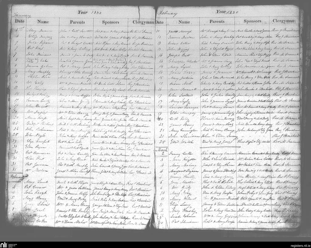 Cobh; County of Cork; Diocese of Cloyne. Baptisms, Jan. 1830 to Mar. 1830