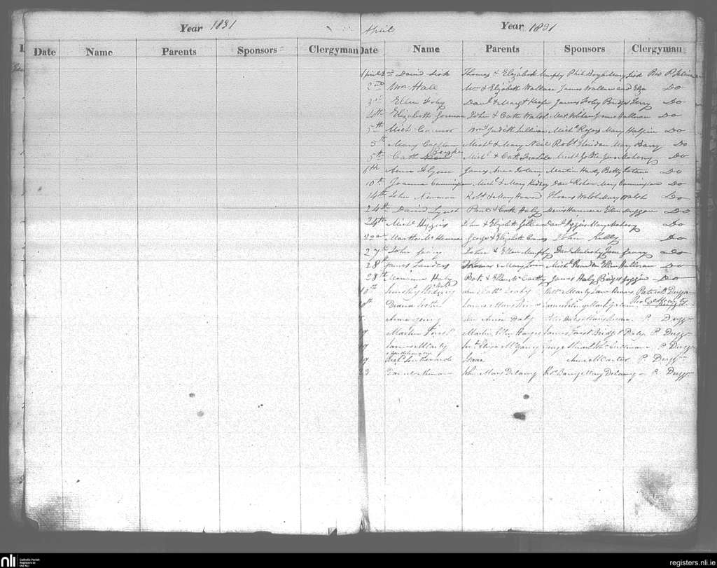 Cobh; County of Cork; Diocese of Cloyne. Baptisms, Apr. 1831