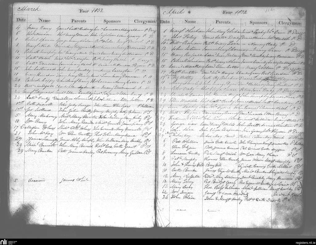 Cobh; County of Cork; Diocese of Cloyne. Baptisms, Mar. 1832 to Apr. 1832
