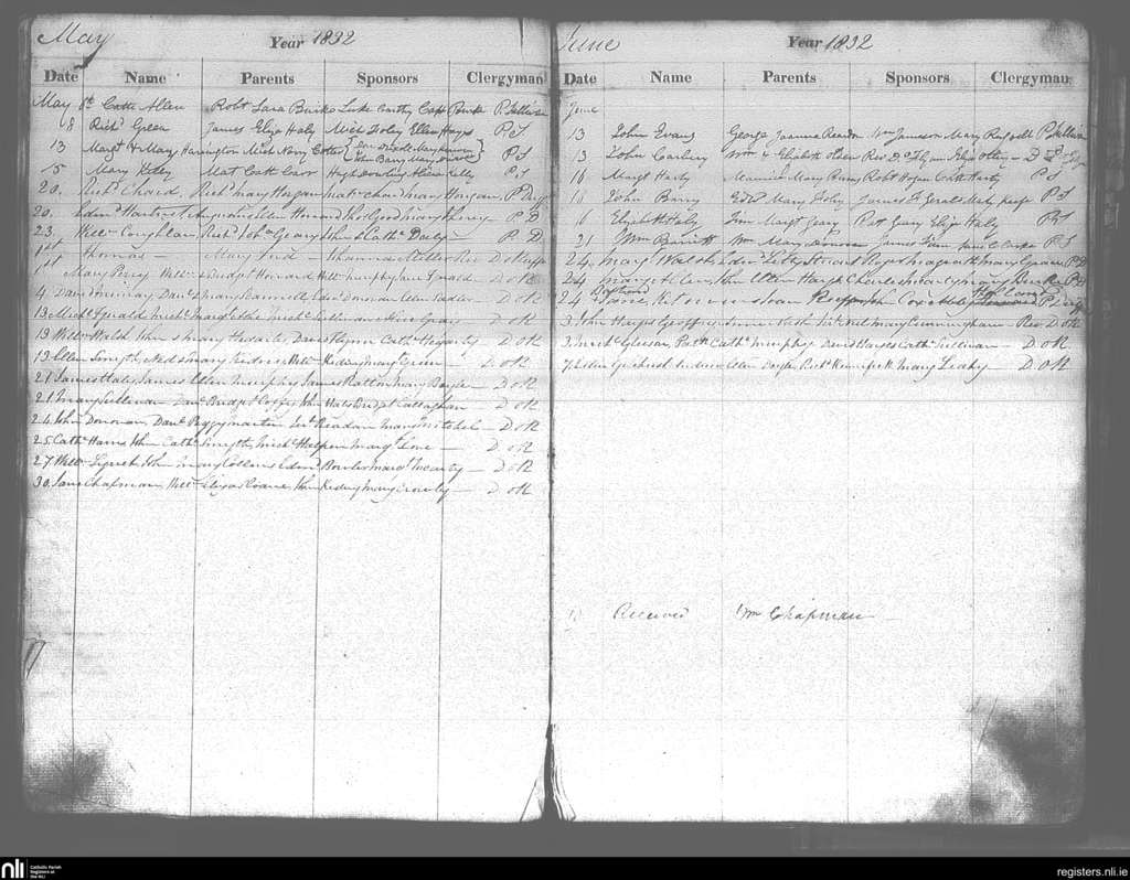 Cobh; County of Cork; Diocese of Cloyne. Baptisms, May 1832 to June 1832
