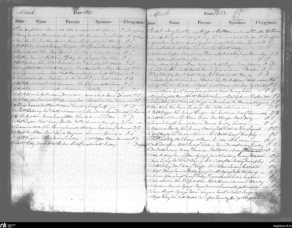 Cobh; County of Cork; Diocese of Cloyne. Baptisms, Mar. 1833 to Apr. 1833