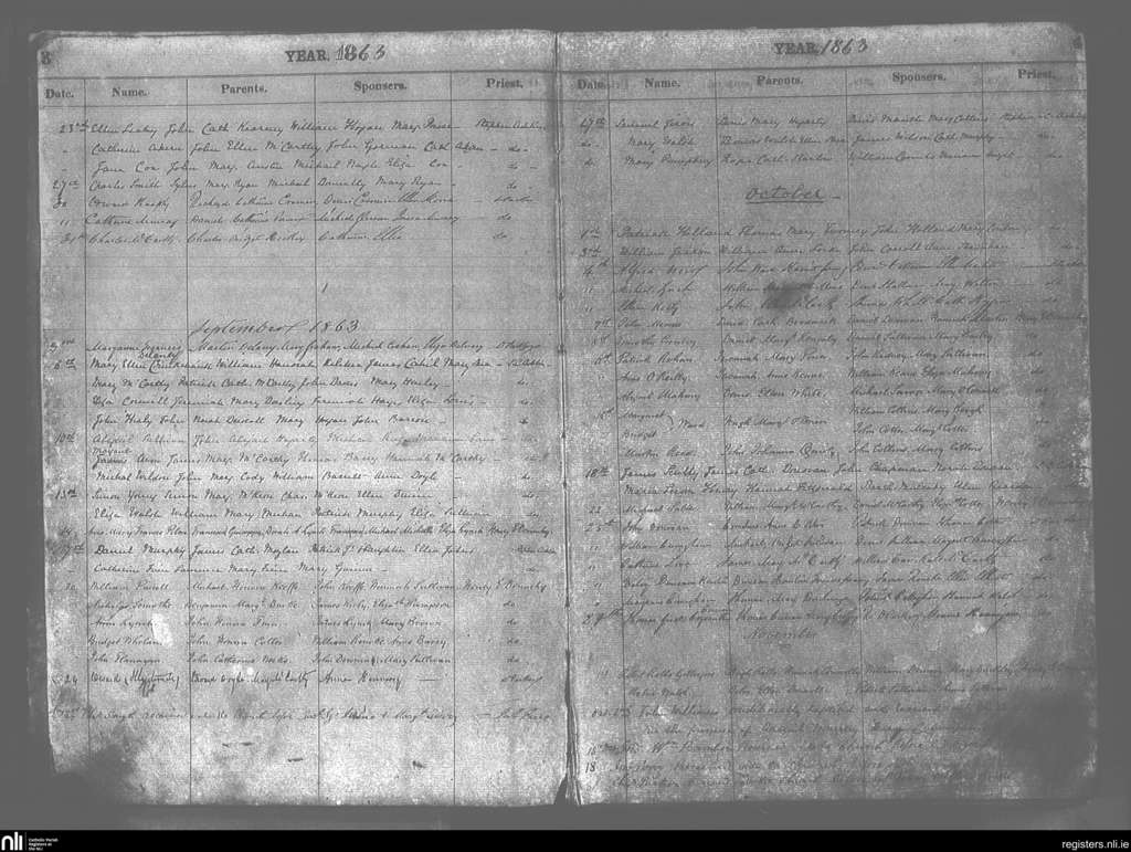Cobh; County of Cork; Diocese of Cloyne. Baptisms, Aug. 1863 to Nov. 1863