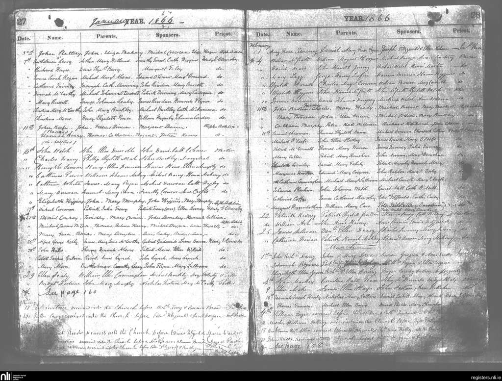 Cobh; County of Cork; Diocese of Cloyne. Baptisms, Jan. 1866 to Mar. 1866