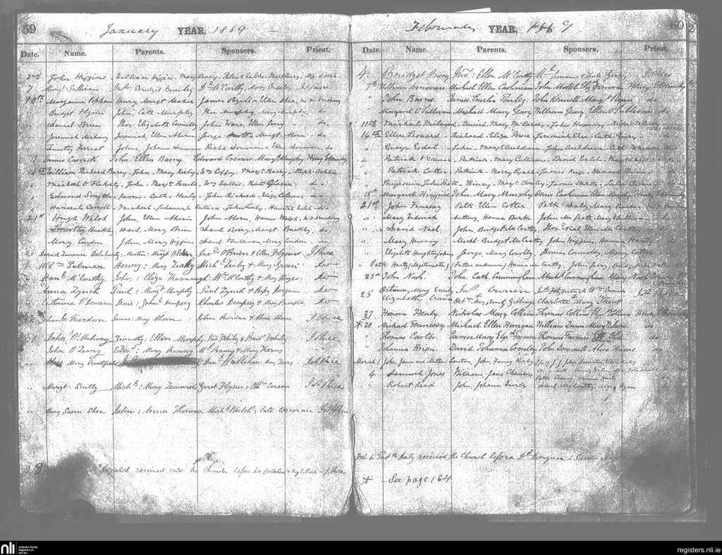 Cobh; County of Cork; Diocese of Cloyne. Baptisms, Jan. 1869 to Mar. 1869