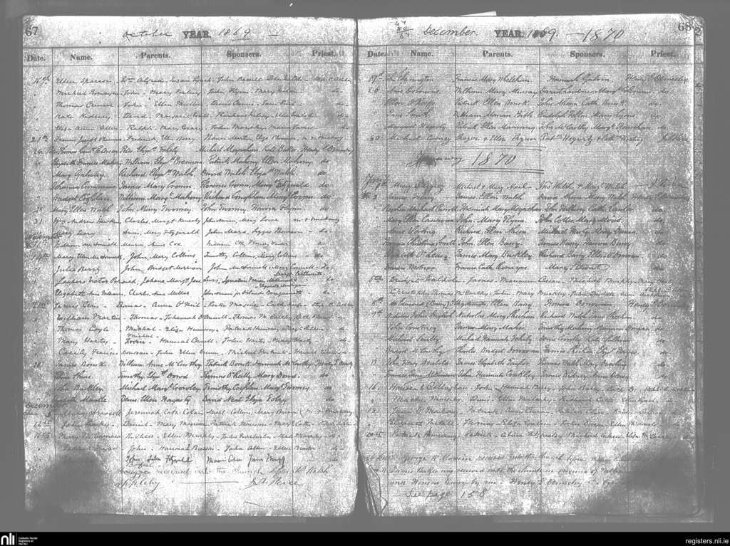 Cobh; County of Cork; Diocese of Cloyne. Baptisms, Oct. 1869 to Jan. 1870