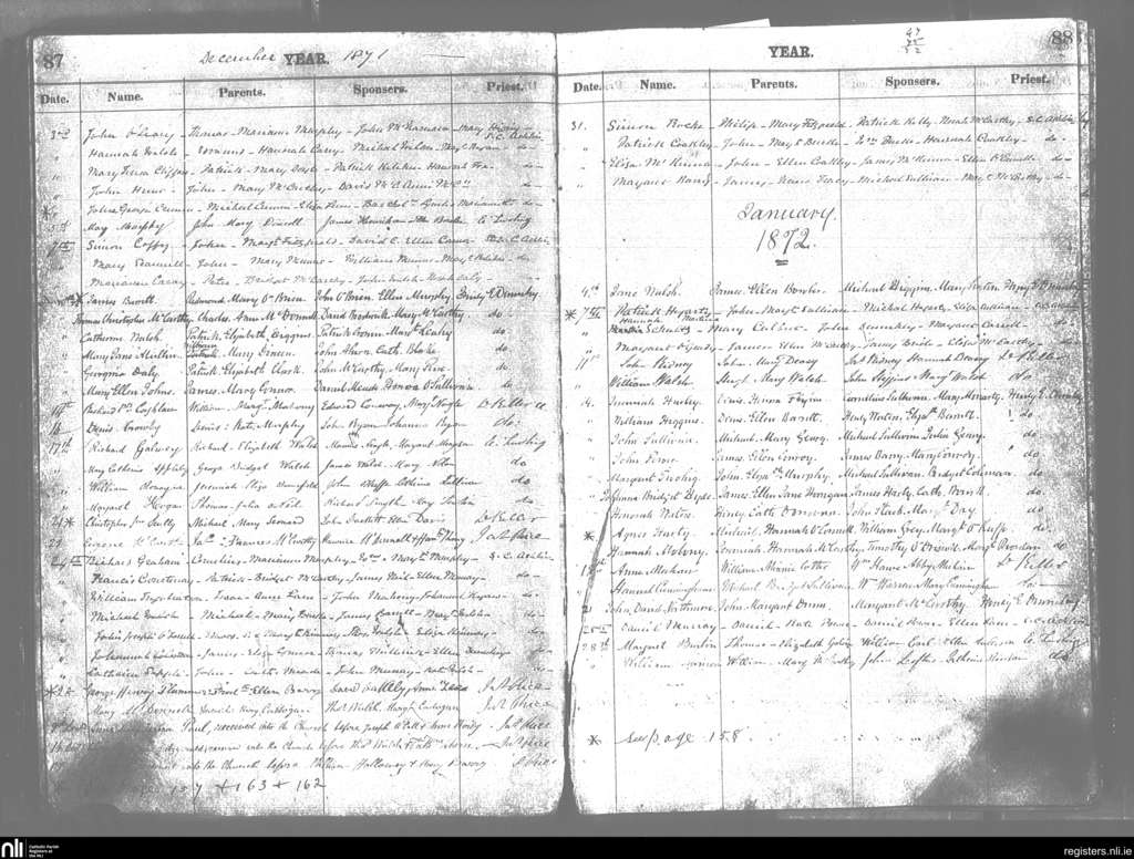 Cobh; County of Cork; Diocese of Cloyne. Baptisms, Dec. 1871 to Jan. 1872