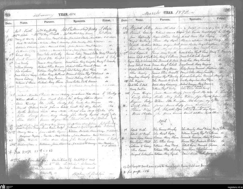 Cobh; County of Cork; Diocese of Cloyne. Baptisms, Feb. 1872 to Apr. 1872