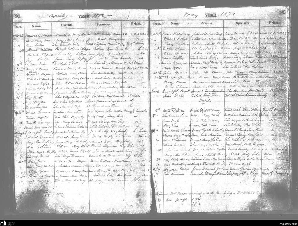 Cobh; County of Cork; Diocese of Cloyne. Baptisms, Apr. 1872 to June 1872