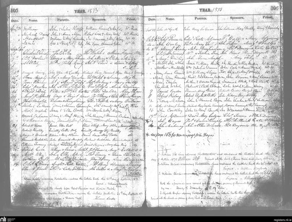 Cobh; County of Cork; Diocese of Cloyne. Baptisms, Aug. 1873 to Oct. 1873
