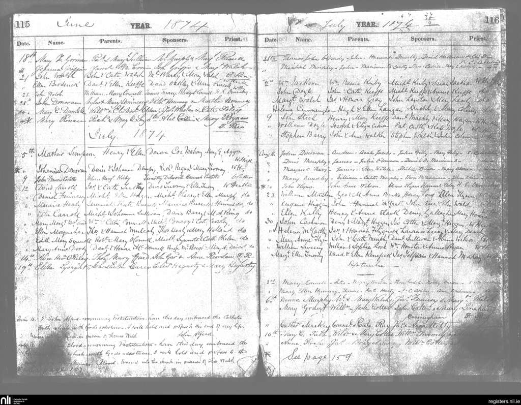 Cobh; County of Cork; Diocese of Cloyne. Baptisms, June 1874 to Sep. 1874
