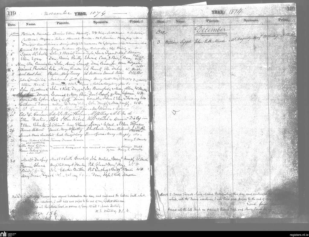 Cobh; County of Cork; Diocese of Cloyne. Baptisms, Nov. 1874 to Dec. 1874