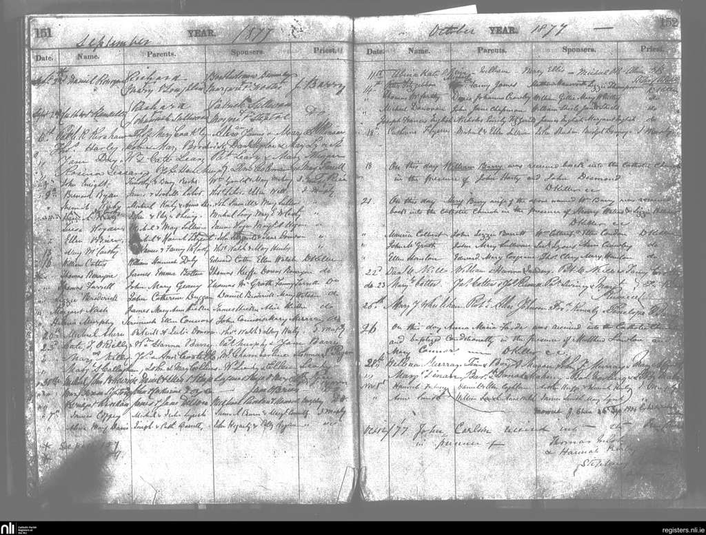 Cobh; County of Cork; Diocese of Cloyne. Baptisms, Sep. 1877 to Nov. 1877