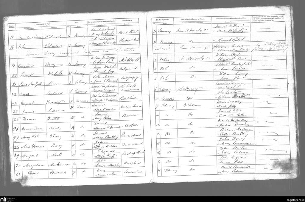 Cobh; County of Cork; Diocese of Cloyne. Baptisms, Jan. 1878 to Feb. 1878