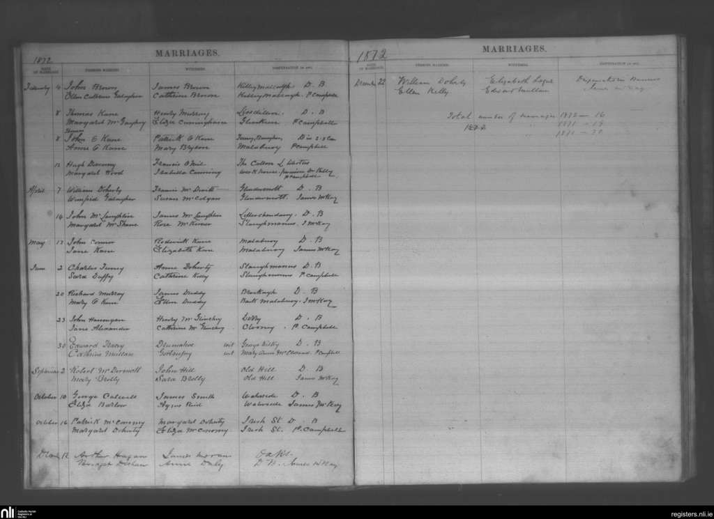 Waterside, Derry city; County of Derry; Diocese of Derry. Marriages, Feb. 1872 to Dec. 1872