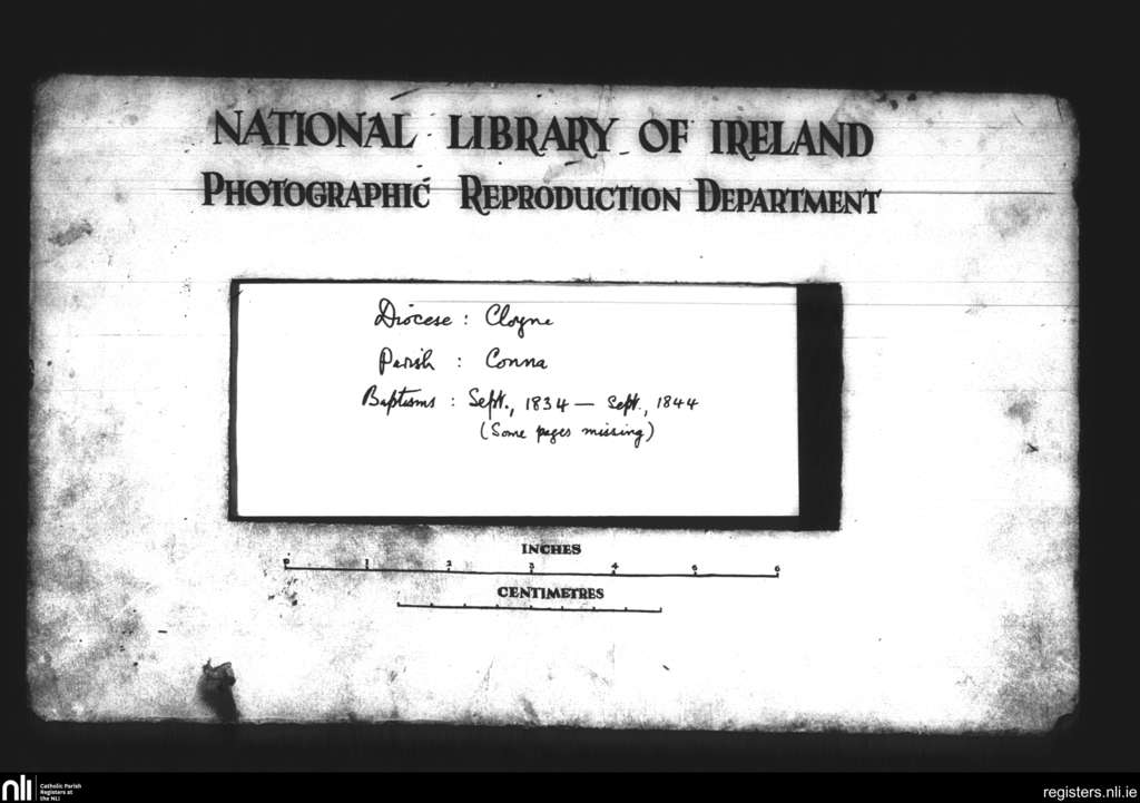 Conna; County of Cork; Diocese of Cloyne. Baptisms