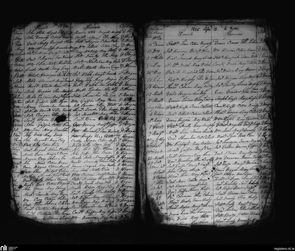 Conna; County of Cork; Diocese of Cloyne. Baptisms, Dec. 1834 to Nov. 1835