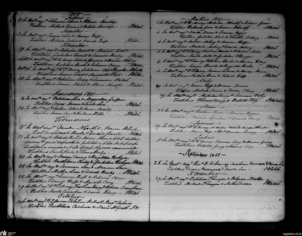 Conna; County of Cork; Diocese of Cloyne. Marriages, July 1850 to Nov. 1851