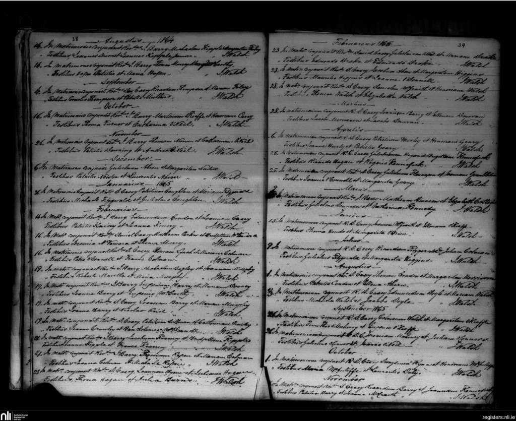 Conna; County of Cork; Diocese of Cloyne. Marriages, Aug. 1864 to Nov. 1865