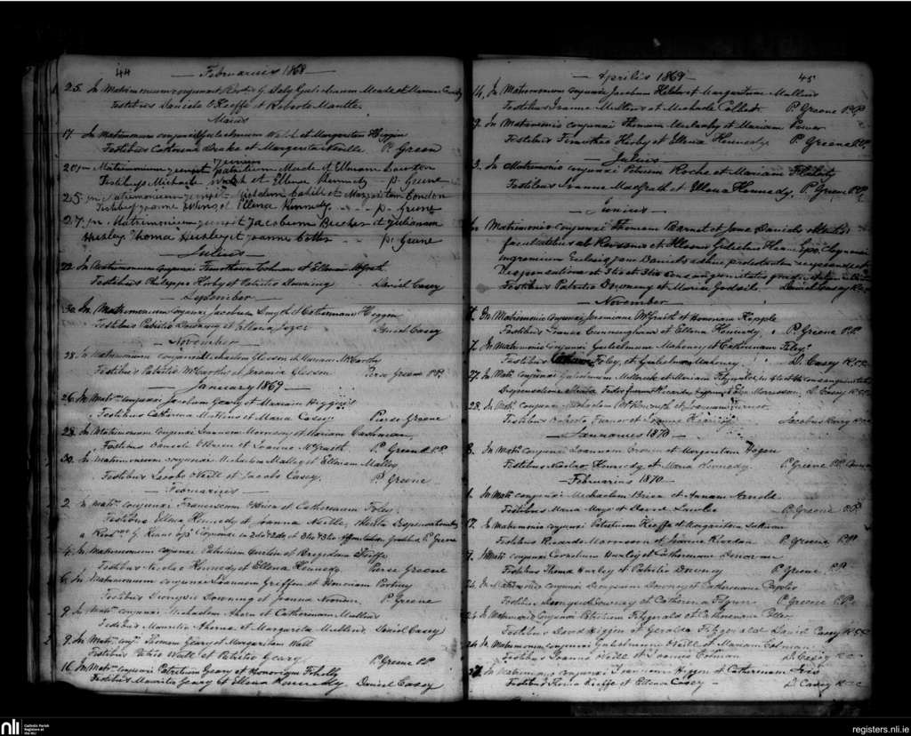 Conna; County of Cork; Diocese of Cloyne. Marriages, Feb. 1868 to Feb. 1870