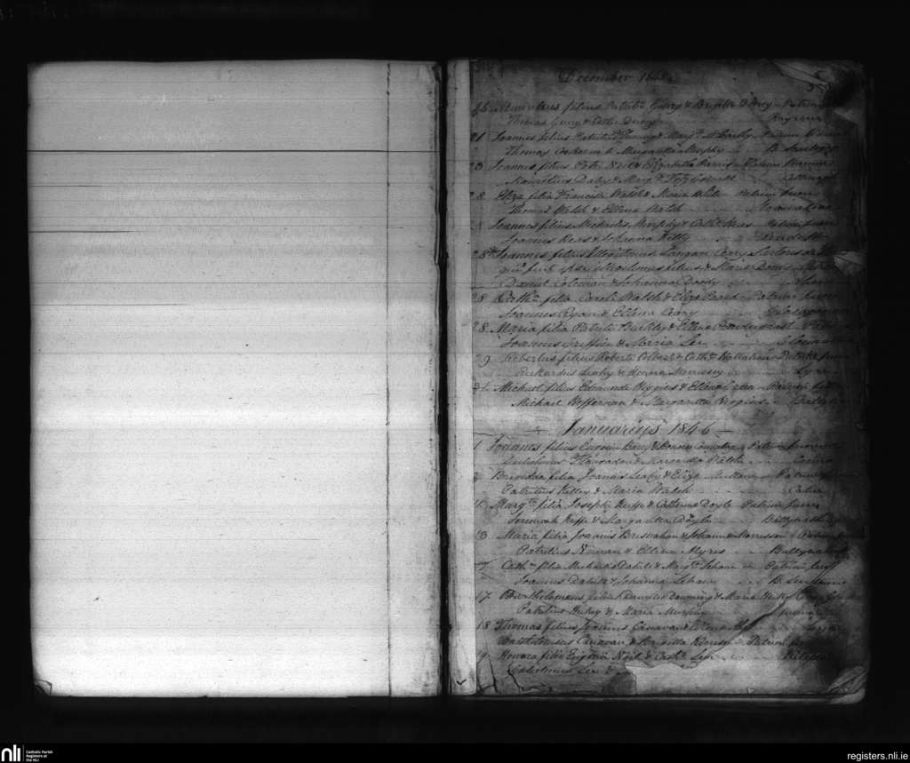 Conna; County of Cork; Diocese of Cloyne. Baptisms, Dec. 1845 to Jan. 1846