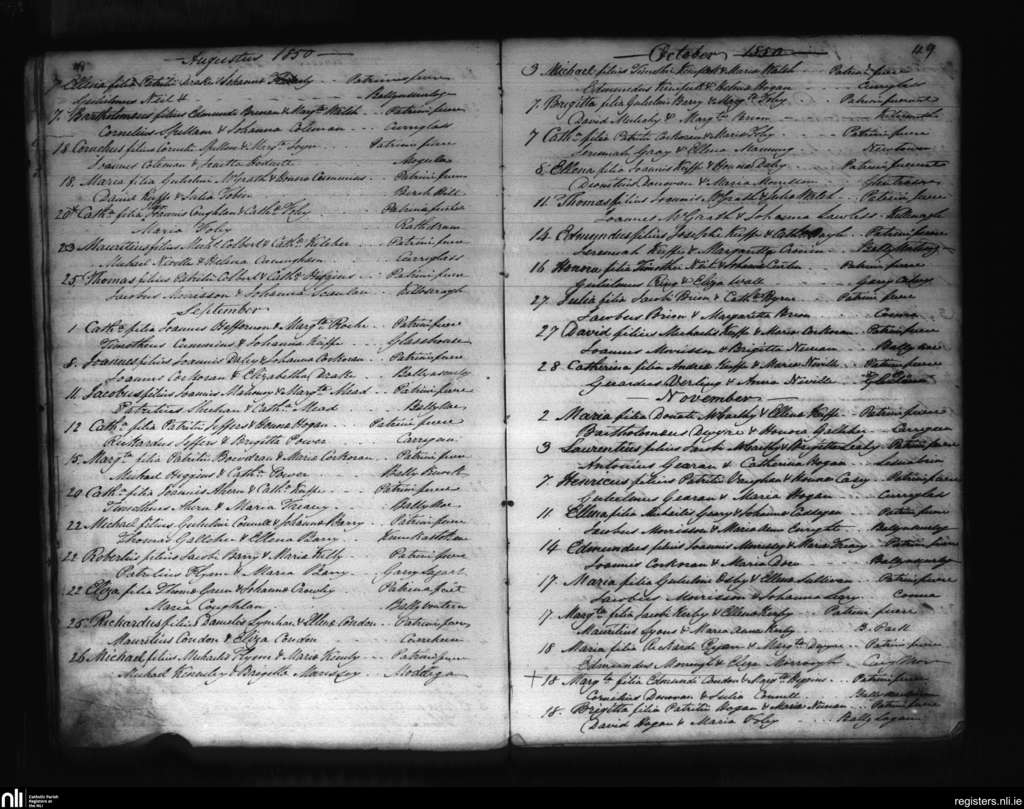 Conna; County of Cork; Diocese of Cloyne. Baptisms, Aug. 1850 to Nov. 1850