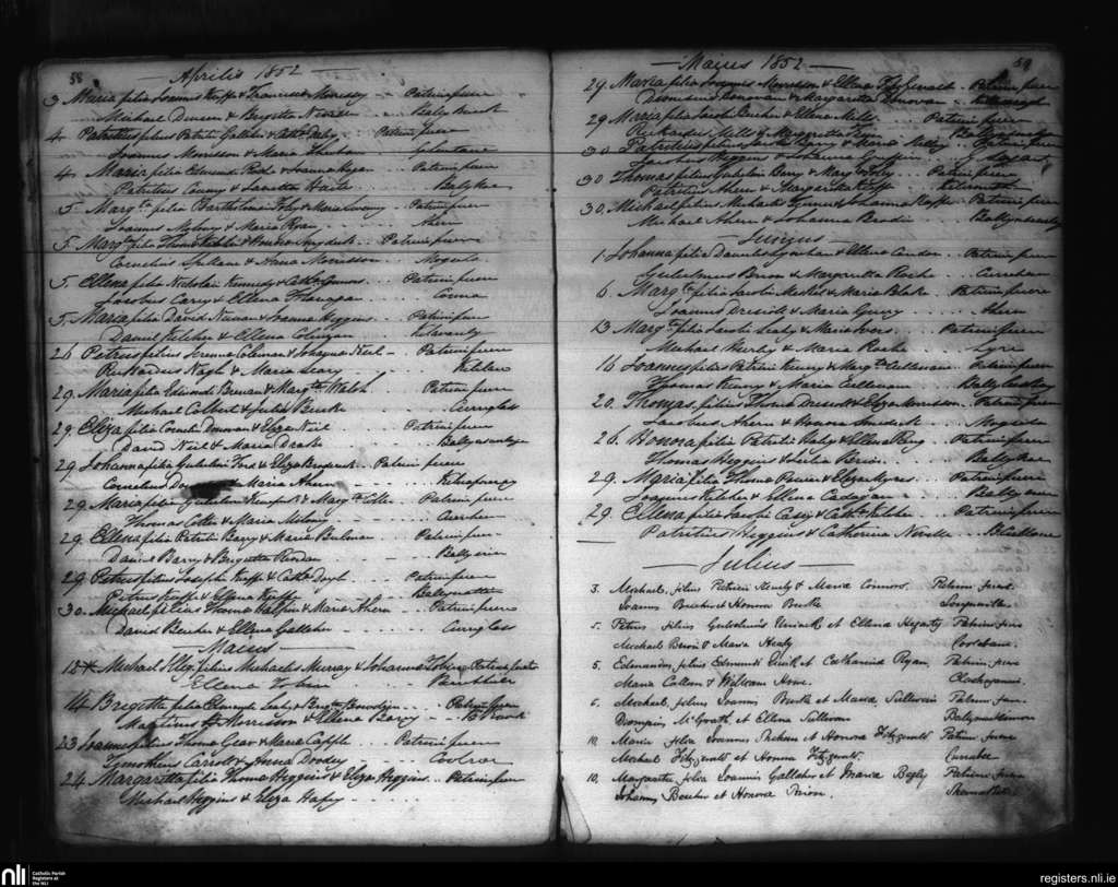 Conna; County of Cork; Diocese of Cloyne. Baptisms, Apr. 1852 to July 1852