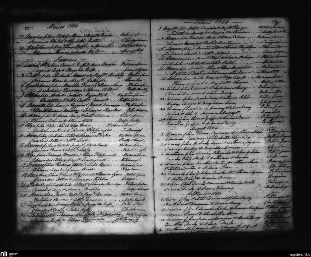Conna; County of Cork; Diocese of Cloyne. Baptisms, May 1854 to Sep. 1854