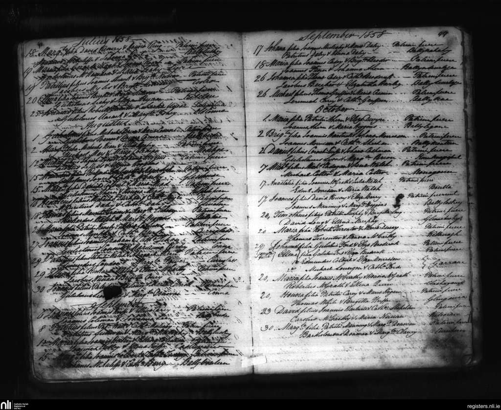 Conna; County of Cork; Diocese of Cloyne. Baptisms, July 1858 to Oct. 1858