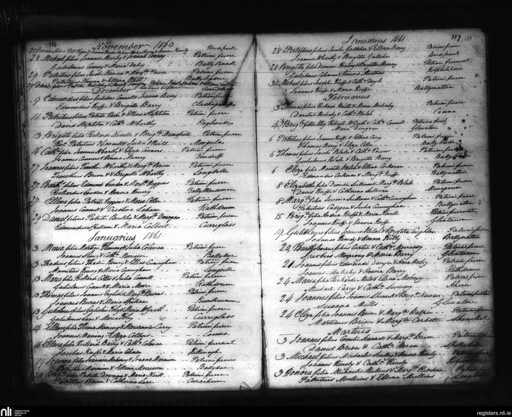 Conna; County of Cork; Diocese of Cloyne. Baptisms, Nov. 1860 to Mar. 1861