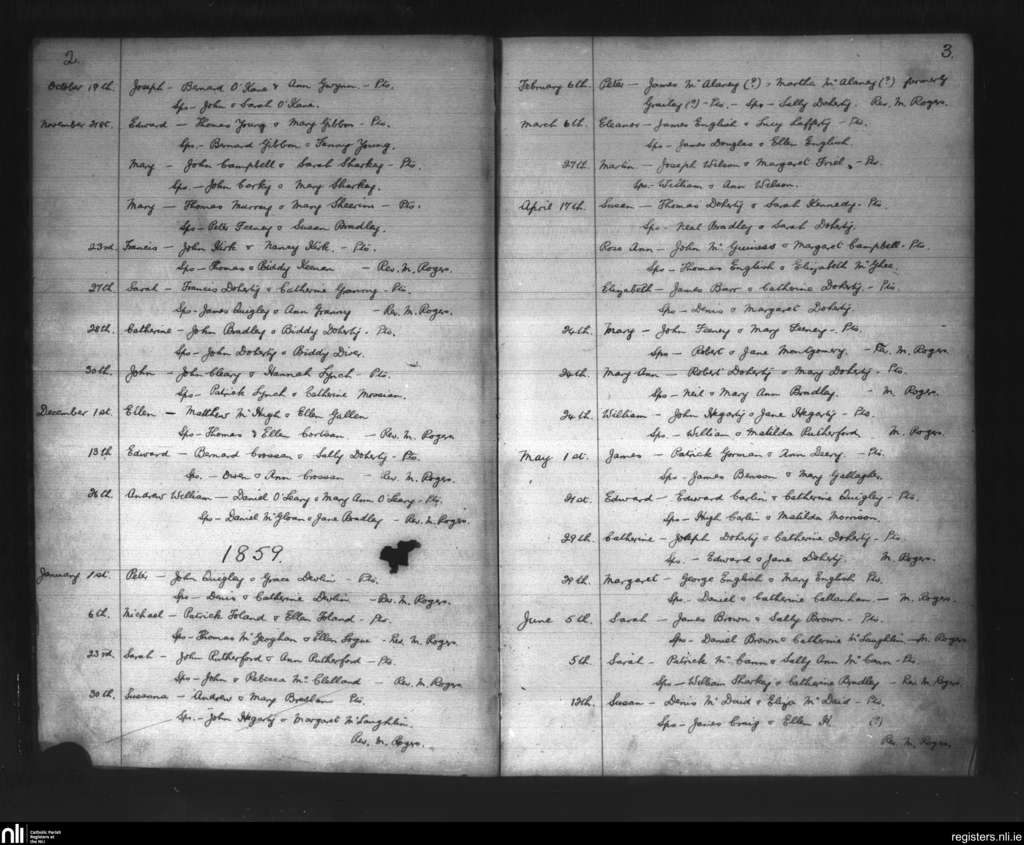Iskaheen; County of Donegal; Diocese of Derry. Baptisms, Oct. 1858 to June 1859