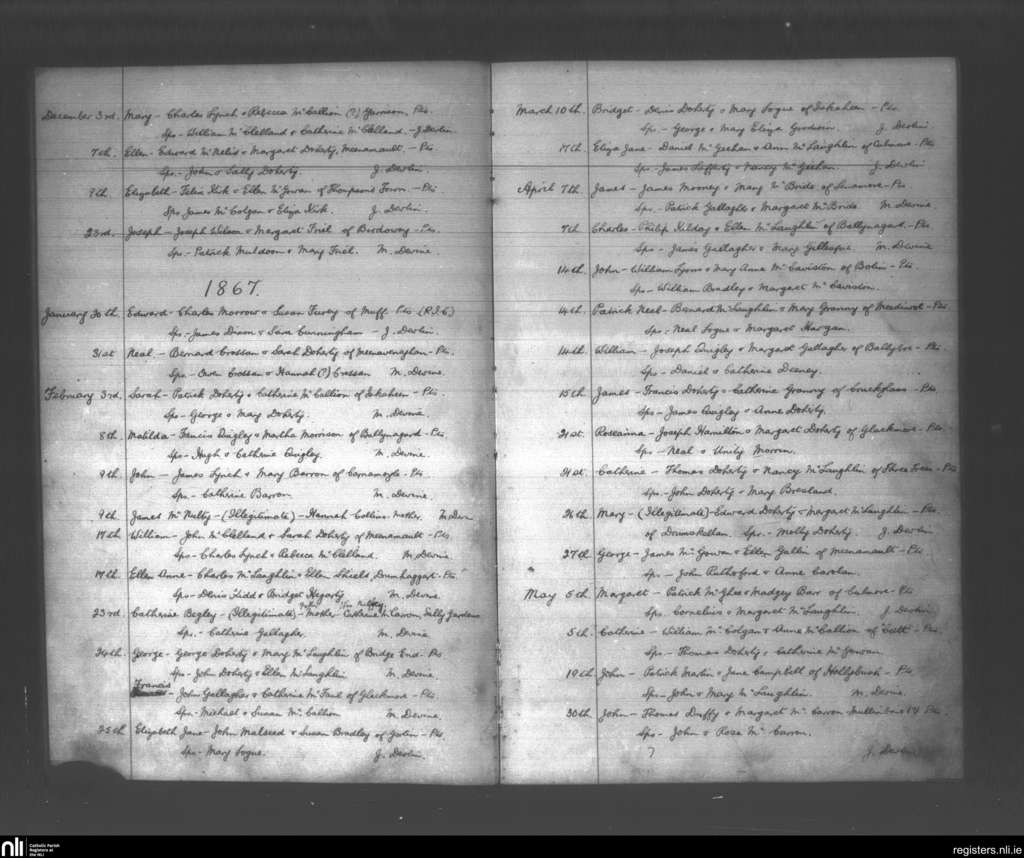 Iskaheen; County of Donegal; Diocese of Derry. Baptisms, Dec. 1866 to May 1867