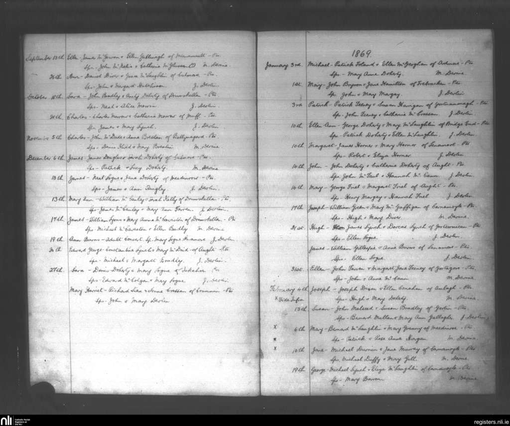Iskaheen; County of Donegal; Diocese of Derry. Baptisms, Sep. 1868 to Feb. 1869