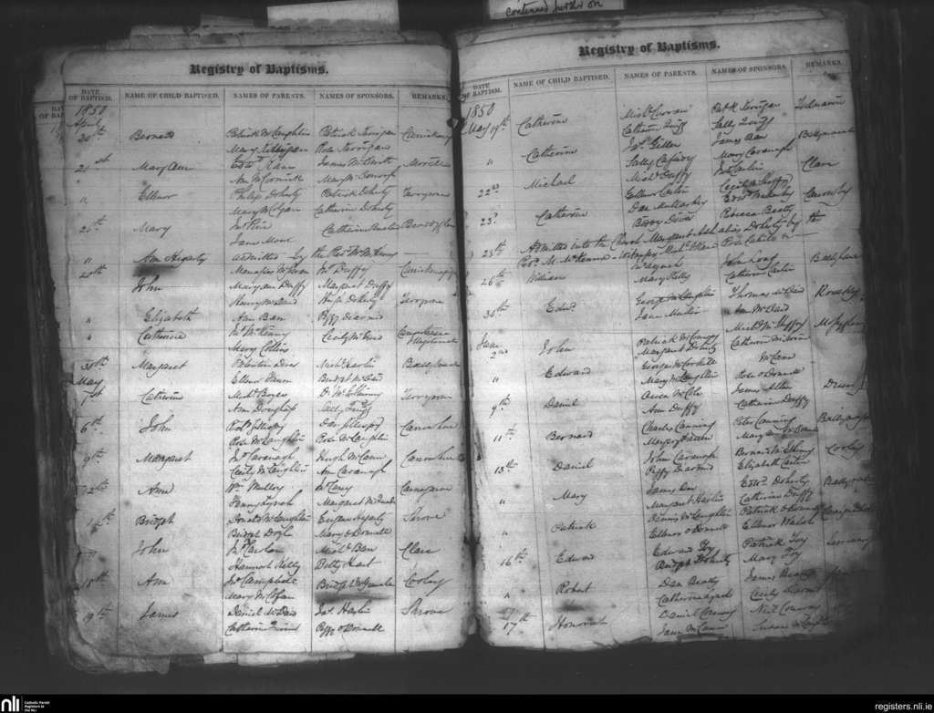 Moville; County of Donegal; Diocese of Derry. Baptisms, Apr. 1850 to June 1850