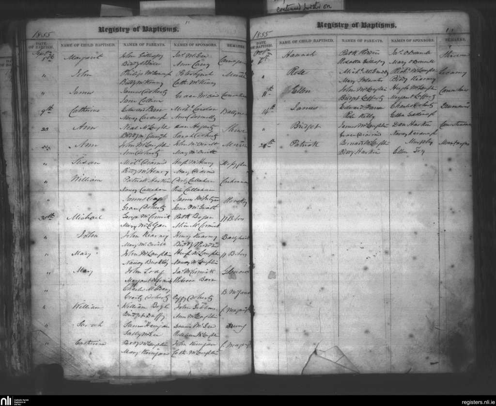 Moville; County of Donegal; Diocese of Derry. Baptisms, Sep. 1855 to Oct. 1855