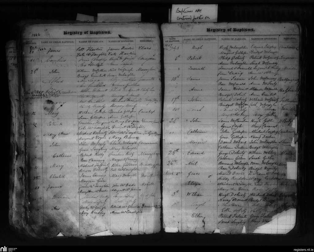 Moville; County of Donegal; Diocese of Derry. Baptisms, Dec. 1866 to Mar. 1867