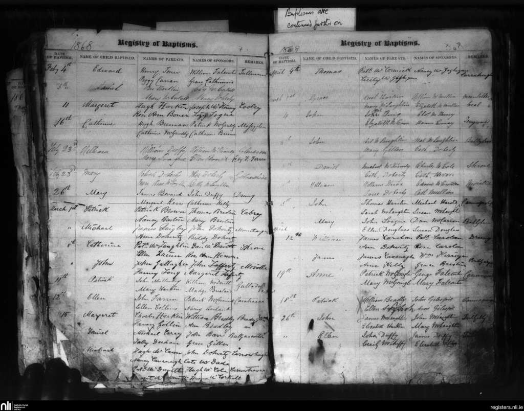 Moville; County of Donegal; Diocese of Derry. Baptisms, Feb. 1868 to Apr. 1868