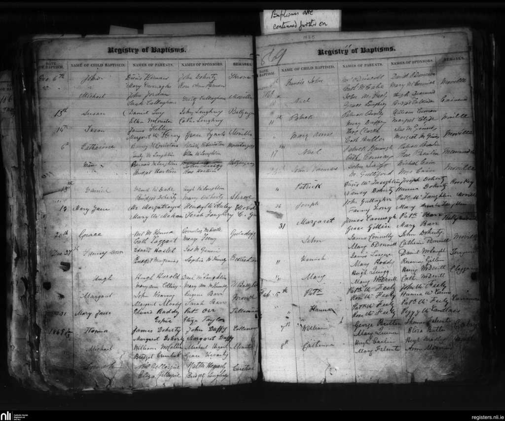 Moville; County of Donegal; Diocese of Derry. Baptisms, Dec. 1868 to Feb. 1869