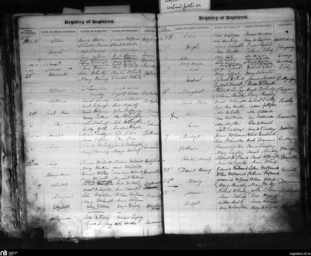 Moville; County of Donegal; Diocese of Derry. Baptisms, Oct. 1871 to Dec. 1871