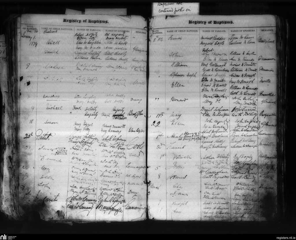 Moville; County of Donegal; Diocese of Derry. Baptisms, Jan. 1874 to Mar. 1874
