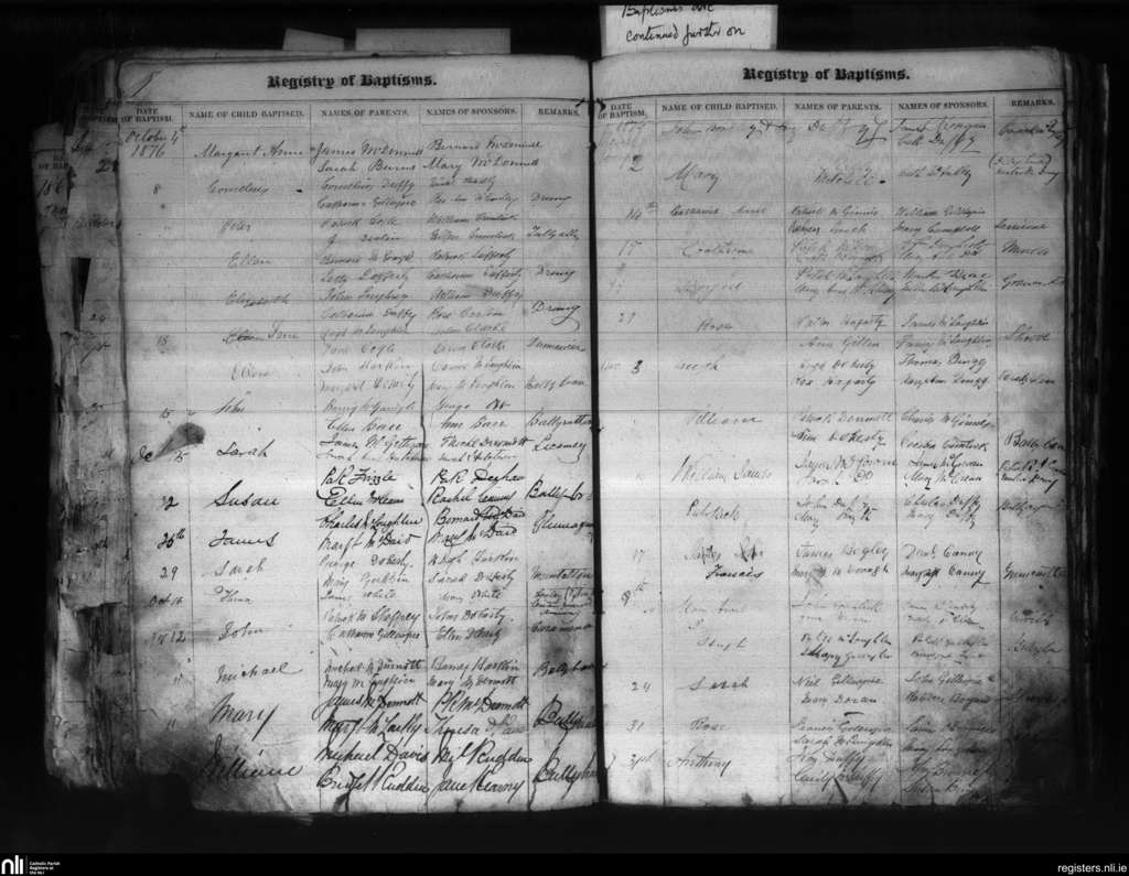 Moville; County of Donegal; Diocese of Derry. Baptisms, Oct. 1876 to Dec. 1876