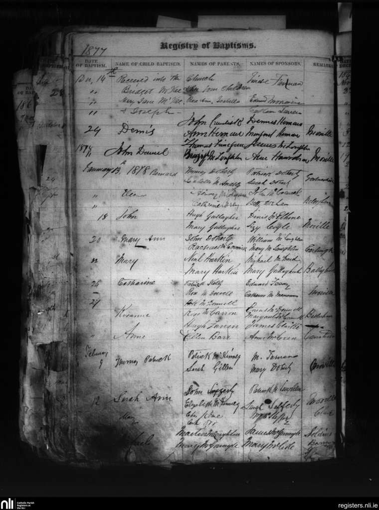 Moville; County of Donegal; Diocese of Derry. Baptisms, Dec. 1877 to Feb. 1878