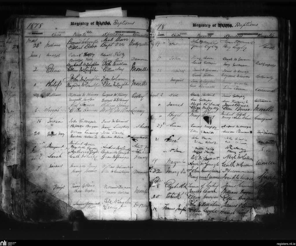 Moville; County of Donegal; Diocese of Derry. Baptisms, May 1878 to Sep. 1878