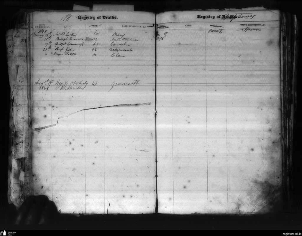 Moville; County of Donegal; Diocese of Derry. Deaths, Jan. 1848 to Aug. 1849