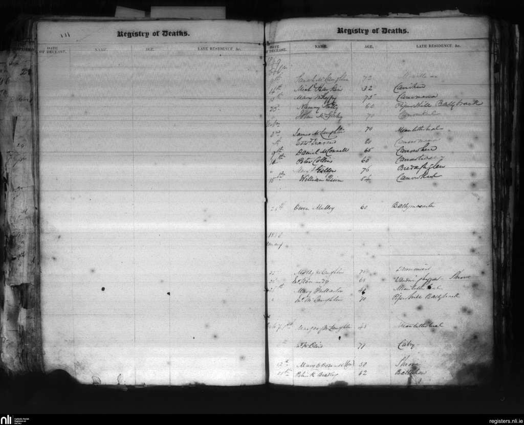 Moville; County of Donegal; Diocese of Derry. Deaths, Nov. 1849 to Feb. 1850