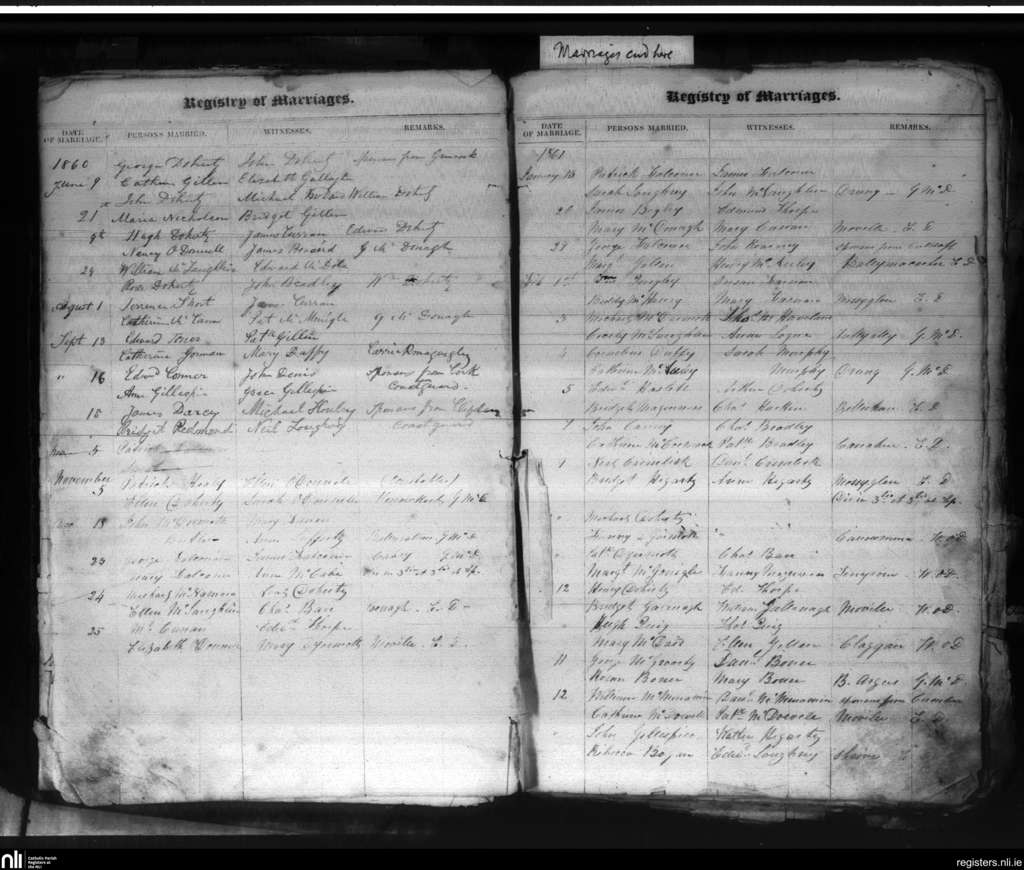 Moville; County of Donegal; Diocese of Derry. Marriages, June 1860 to Feb. 1861