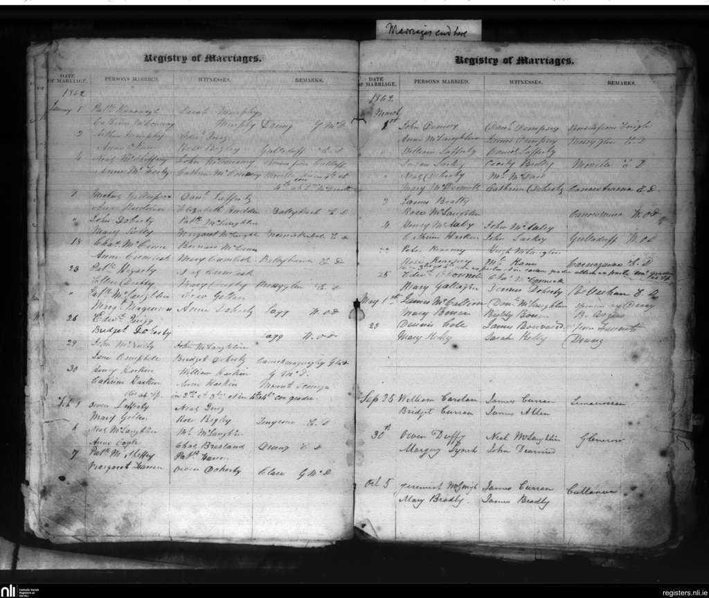 Moville; County of Donegal; Diocese of Derry. Marriages, Jan. 1862 to Oct. 1862